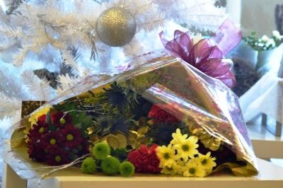 A mixed Christmas bunch of seasonal cut flowers in Christmas colours chosen from the best selection on the day for your loved one to arrange into a vase at home.