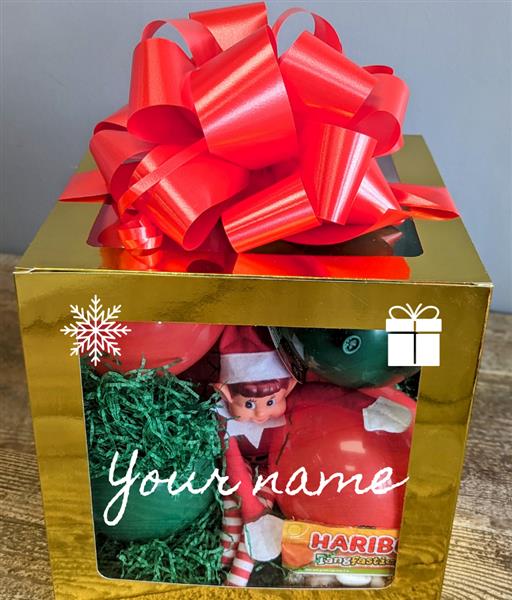 Your Elf can arrive in a gold Gift box straight from the North Pole.
