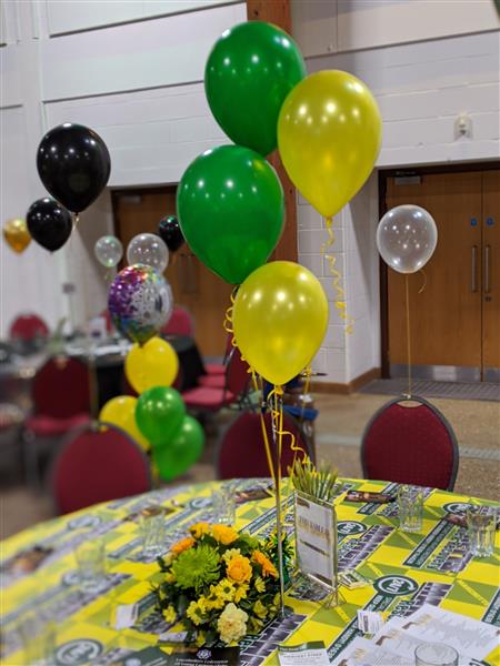 Helium balloons add fun to add event and fill large rooms well and inexpensively.