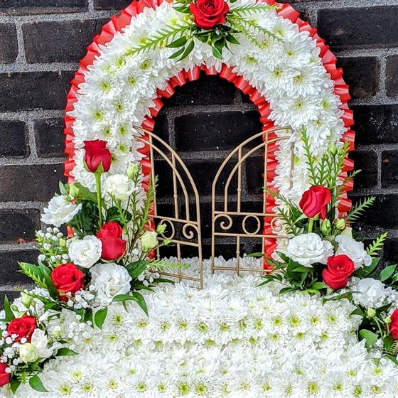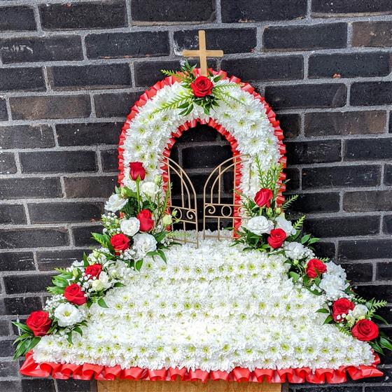 A large Gates of Heaven Tribute with 3 steps and long side sprays.