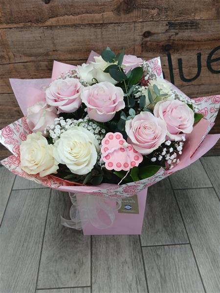 A beautiful bouquet of a dozen roses in blush colours of pink and ivories. Made and delivered in an aqua bubble of water, an elegant gift of only the best roses for only the best mum.