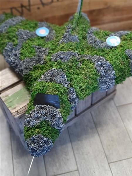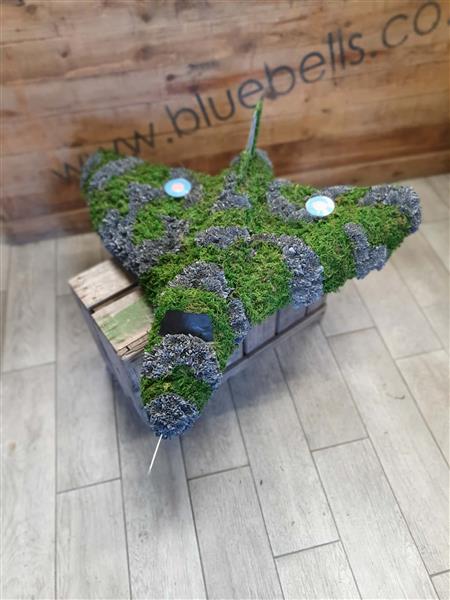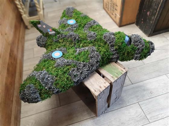 A striking funeral tribute designed in the shape of the iconic Vulcan aircraft. This bespoke arrangement is carefully crafted using a combination of fresh flowers and natural moss to recreate the distinctive delta-wing silhouette of the plane. Selected elements of the aircraft are enhanced with subtle 3D detailing to give depth and realism, making the tribute especially meaningful for aviation enthusiasts or those with a connection to the RAF.