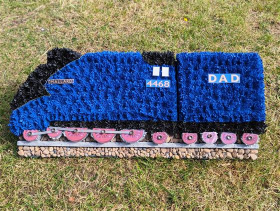 This tribute is 3 foot long on and price includes a double stand so the flowers can be stood up at the service.