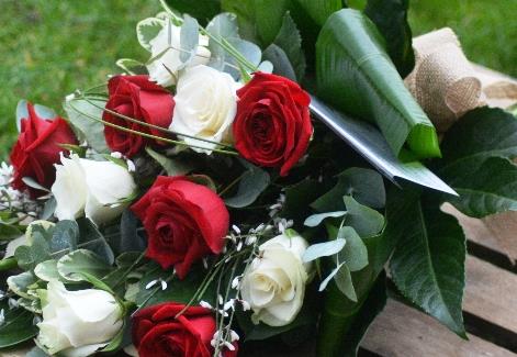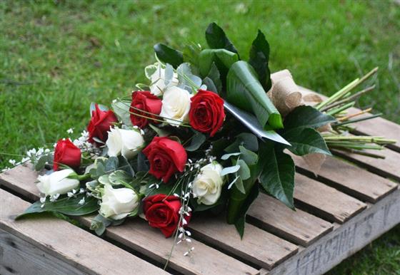 Tied Sheaf of Roses. A simple elegant tribute that would be ideal for echo funerals as no floral foam or packaging.