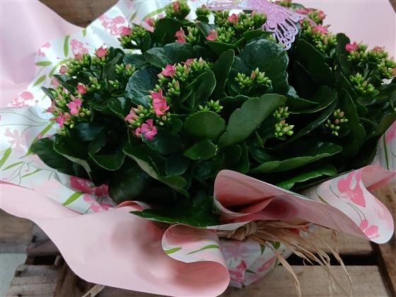 Wrapped in matching cellophane, finished with a butterfly.