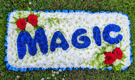 3 foot by 1 foot flat tribute with wording to spell 'Magic'