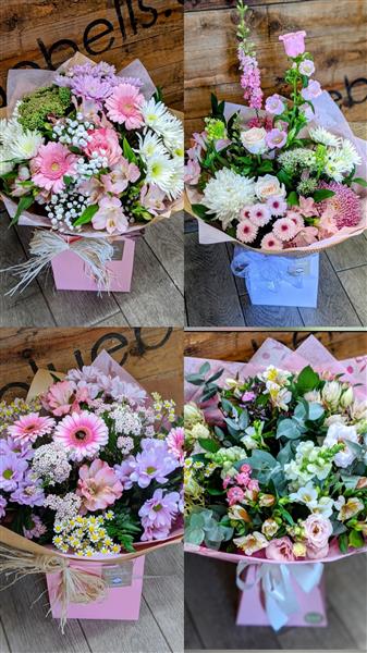 Pink Serenade is a dreamy handtied Valentine's bouquet combining soft pink and pastel flowers. Graceful and romantic, it's perfect for expressing love and sweet Valentine's sentiment.
